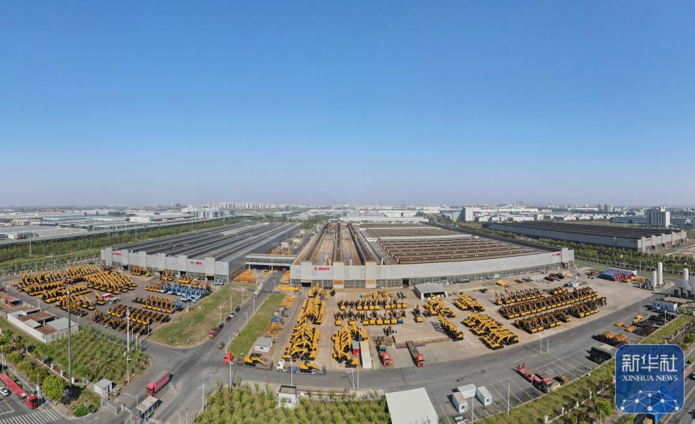 ↑ 空中俯瞰上海三一重机股份有限公司外景(无人机全景照片 4月15日摄)。新华社记者方喆摄