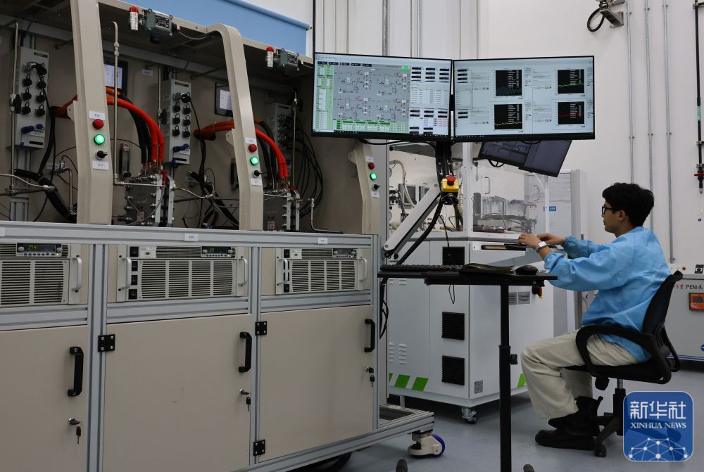 ↑ 技术人员在上海氢器时代科技有限公司的光储研发中心工作(4月24日摄)兴旺国际投资。新华社记者鲁鹏摄