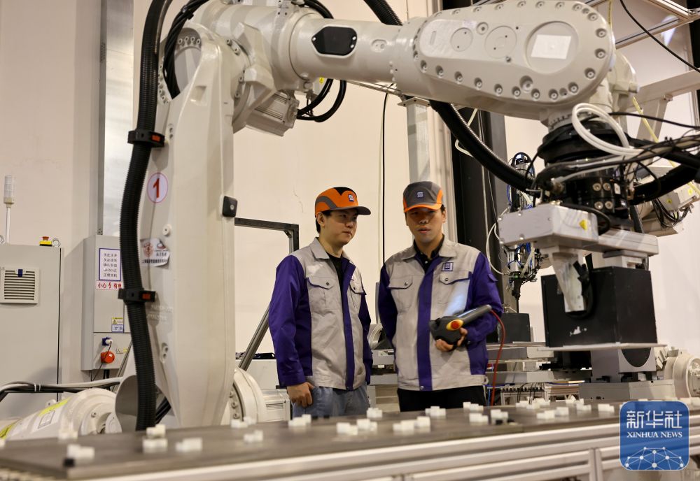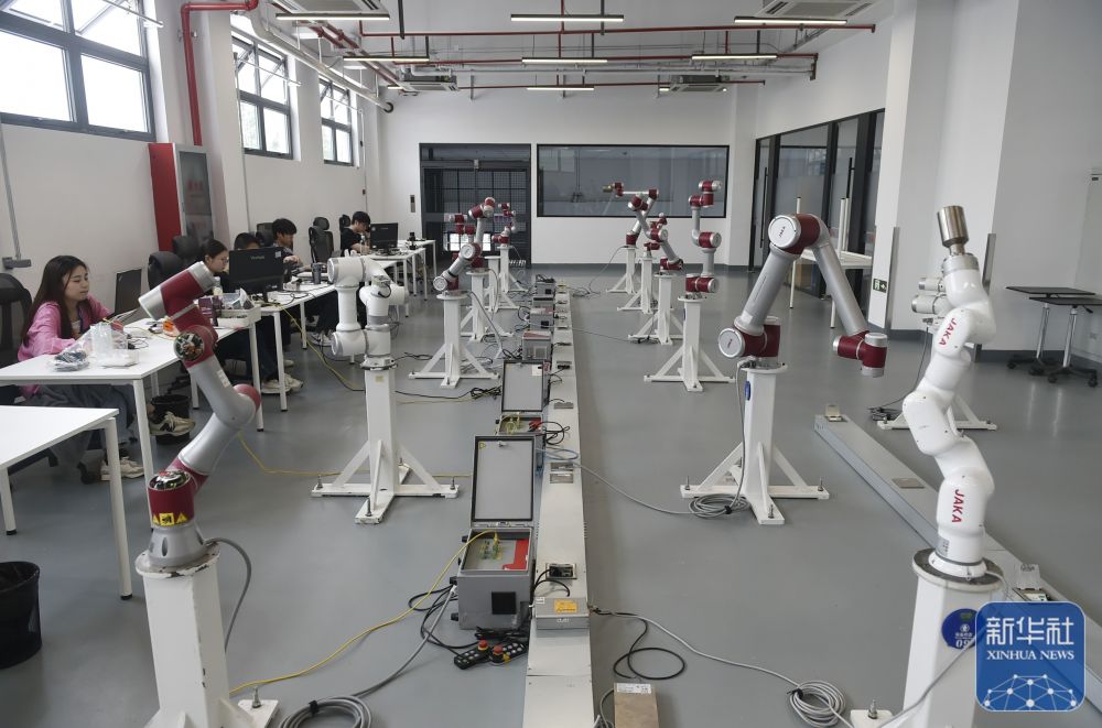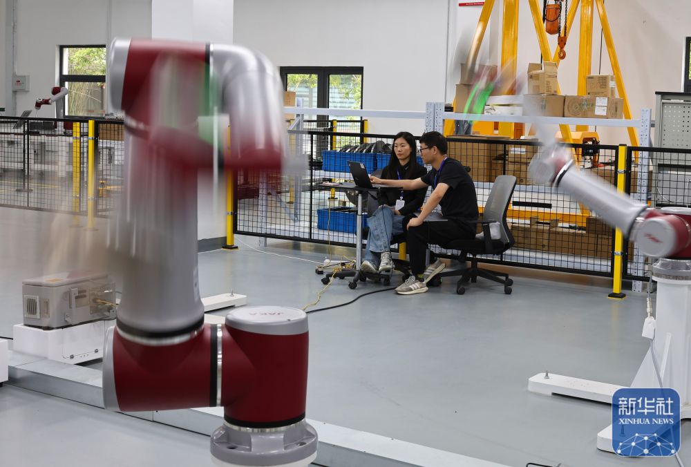 ↑ 技术人员在上海节卡机器人股份有限公司的性能测试区对机器人进行测试(4月24日摄)。该公司是一家聚焦于新一代协作机器人本体与智慧工厂创新研发的高新技术企业,相关产品服务于汽车、电子、半导体等全球知名品牌的生产线,也在众多商业新消费领域从事与消费者直接接触的服务工作。新华社记者方喆摄