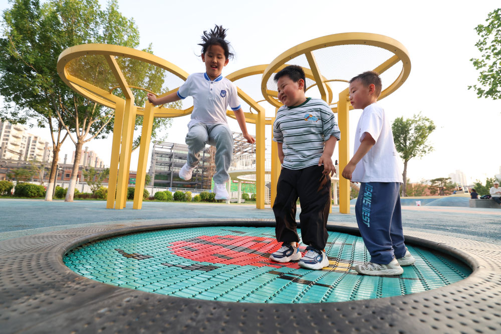 5月19日,小朋友们在石家庄拾光智慧体育公园玩耍。新华社发(梁子栋摄)